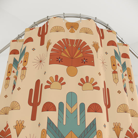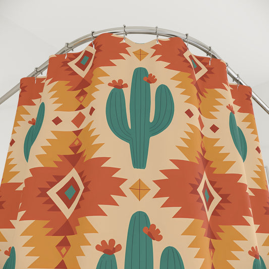 Desert Boho Shower Curtain - Vintage Southwest Decor, Bathroom Accessory, Cactus Patterns, Bohemian Style, Home Decor, Gift