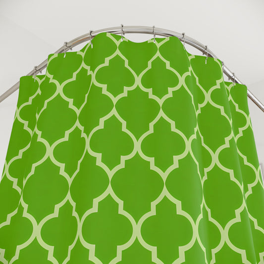 Modern Geometric Shower Curtain - Vibrant Green Home Decor, Bathroom Accent, Gift for Housewarming, Summer Refresh, Moroccan Quatrefoil