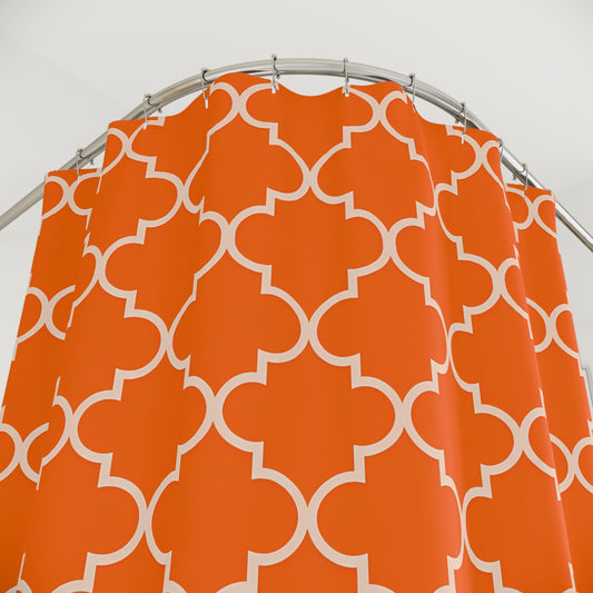 Vibrant Orange Geometric Shower Curtain, Bright Bathroom Decor, Modern Home Accessory, Gift for Homeowner, Ethnic Vibe, Moroccan Quatrefoil