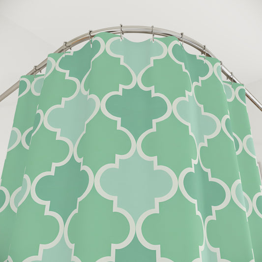 Stylish Geometric Shower Curtain, Modern Bathroom Decor, Mint Green Shower Curtain, Home Essentials, Chic Bathroom, Moroccan Quatrefoil