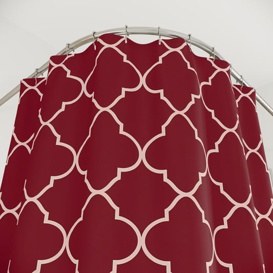 Elegant Geometric Shower Curtain, Stylish Bathroom Decor, Modern Home, Holiday Gift Idea, Luxe Bathroom, Dark Red Moroccan Quatrefoil