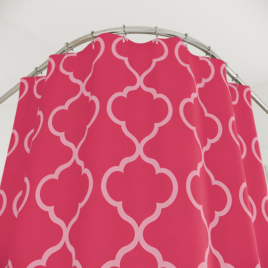 Vibrant Pink Patterned Shower Curtain - Modern Bathroom Decor, Gift for Housewarming, Boho Chic, Unique Bathroom Accent, Moroccan Quatrefoil