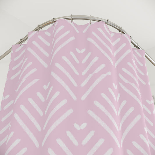 Boho Pink and White Shower Curtain, Feminine Eclectic Bathroom Decor - Floral, Delicate, Bohemian, Chic, Vintage Home, Girly Gift, Boho