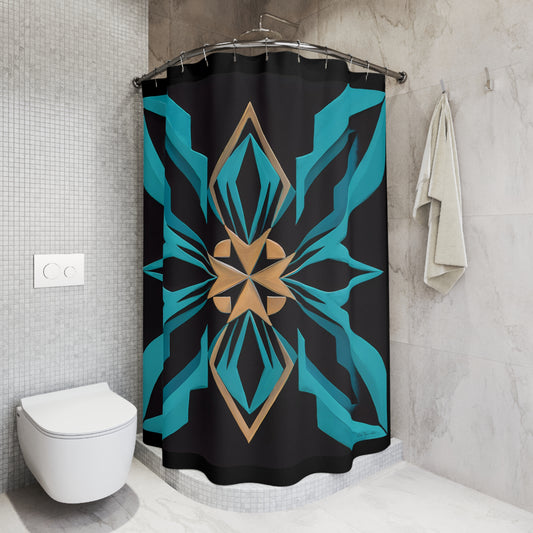 Art Deco Shower Curtain Hollywood Regency Style, Dramatic and Glamorous Bathroom Accessories, Retro Home Decor, Blue Gold Black Colorful