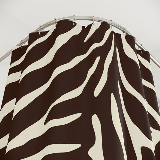 Zebra Stripe Shower Curtain, Brown & White Bathroom Decor, Glam Luxury Bath Curtain, Animal Print Bathroom Accessories, Safari Theme Home