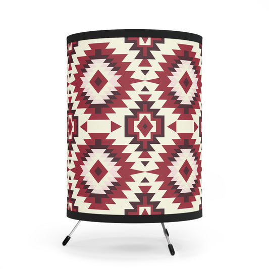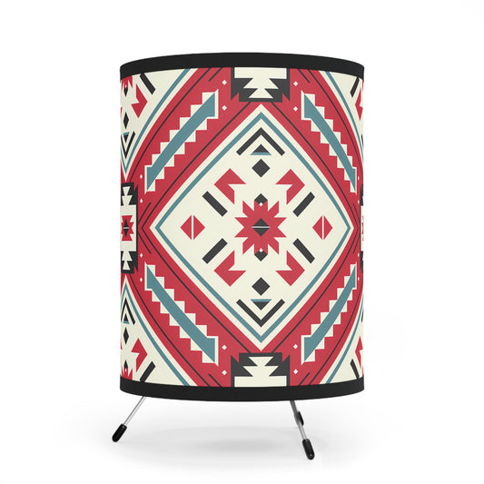 Bohemian Tripod Lamp with Geometric Shade, Vintage Home Decor, Table Lighting, Tribal Pattern Illuminate Your Space, Perfect for Cozy