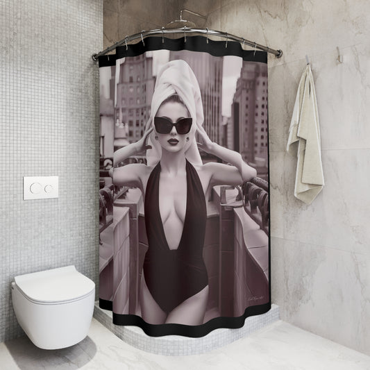 Fashionista Glamour Shower Curtain - Sepia Toned Fine Art Photography, NYC Rooftop Deck, Bathroom Decor