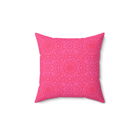 Vibrant Hot Pink Mandala Pattern Pillow, Decorative Cushion, Boho Home Decor, Cozy Living Room Accent, Gift for Her, Pink Floral Pillow