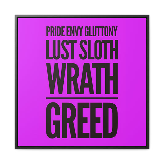 Square Frame Wall Art Canvas, Typography 7 Deadly Sins Magenta Background, Cool Statement Piece, Gallery Canvas Wrap Print, Home Decor