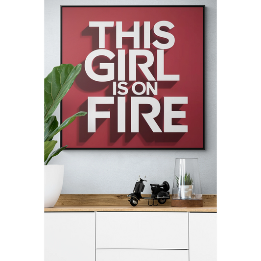 Canvas Wall Art, Female Empowerment Decor, Typography Square Frame, This Girl is on Fire, Trendy Red and White Home Decor, Gallery Wrap